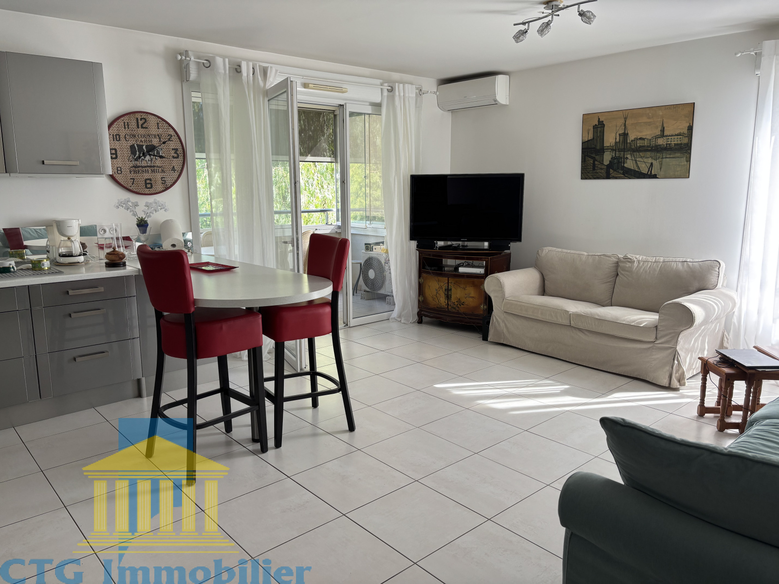 Dans une résidence récente, appartement de type 3 au premier étage de l'immeuble avec un grand séjour, une cuisine américaine équipée, deux chambres, une salle d'eau et WC séparé.