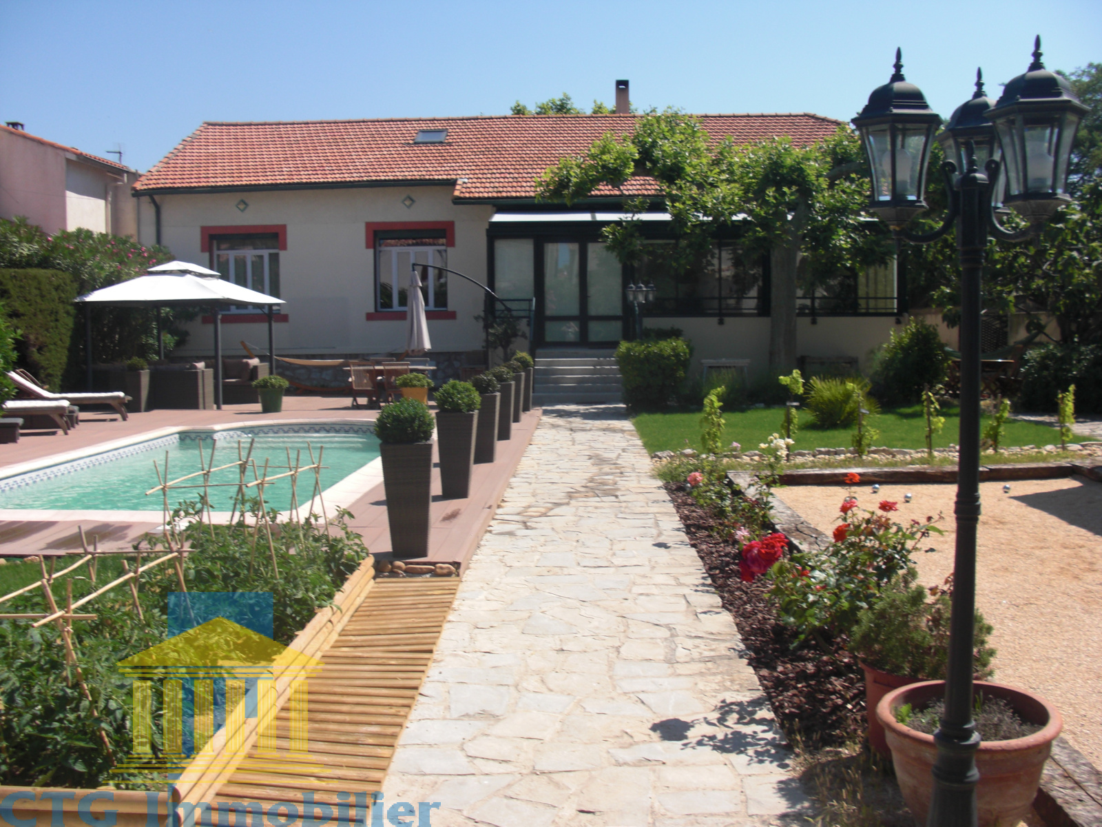 Cette maison se compose de 160 m2 habitables et 150 m2 d'annexes pour la plupart aménagés et habitables. Un beau et grand jardin agrémente cette villa avec une picsine et plage de soleil, terrain de boules et potager.